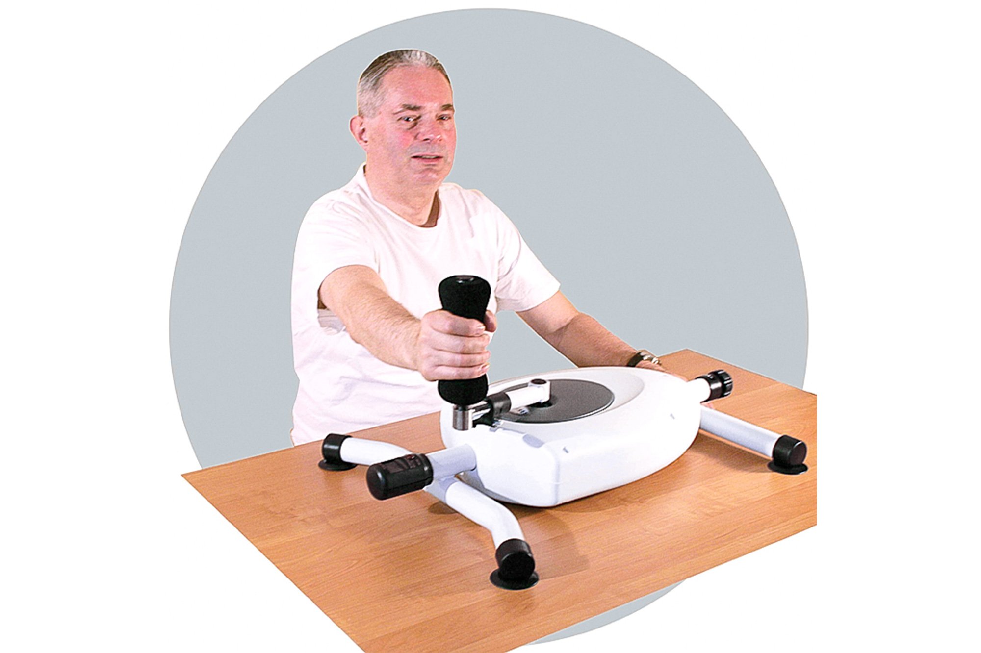 | Curamotion | Корисний пристрій для збільшення діапазону рухів у суглобах, зміцнення м'язів і поліпшення кровообігу. Пристрій для розміщення на горизонтальній поверхні, оснащений 4 ніжками з гумовими присосками та спеціальним нековзним килимком Має плавну, тиху роботу завдяки магнітному опору, який легко регулюється за допомогою спеціальної ручки. Автоматичний 5-функціональний РК-дисплей, який показує кількість обертів, обертів за хвилину, час тренування, витрачені калорії та сканування всіх функцій. Довжина маятникового важеля регулюється в діапазоні від 33 до 56 см. Двонаправлене обертання дозволяє виконувати вправи в обох напрямках. Пристрій виготовлений зі сталевої основи та ударостійкого пластикового корпусу. | Умови використання | Перед будь-яким тренуванням розігрівайтеся 8 хвилинами аеробної активності. Одягайте зручний одяг, який забезпечує свободу рухів, не обтягує і не обмежує. Дихайте природно і ніколи не затримуйте дихання під час вправ. Виконуйте вправи послідовно, з правильною технікою та з повною амплітудою рухів. Після тренування розслабтеся за допомогою повільної розтяжки, їзди на велосипеді або пішої прогулянки. Починайте вправи повільно і поступово збільшуйте рівень опору. |