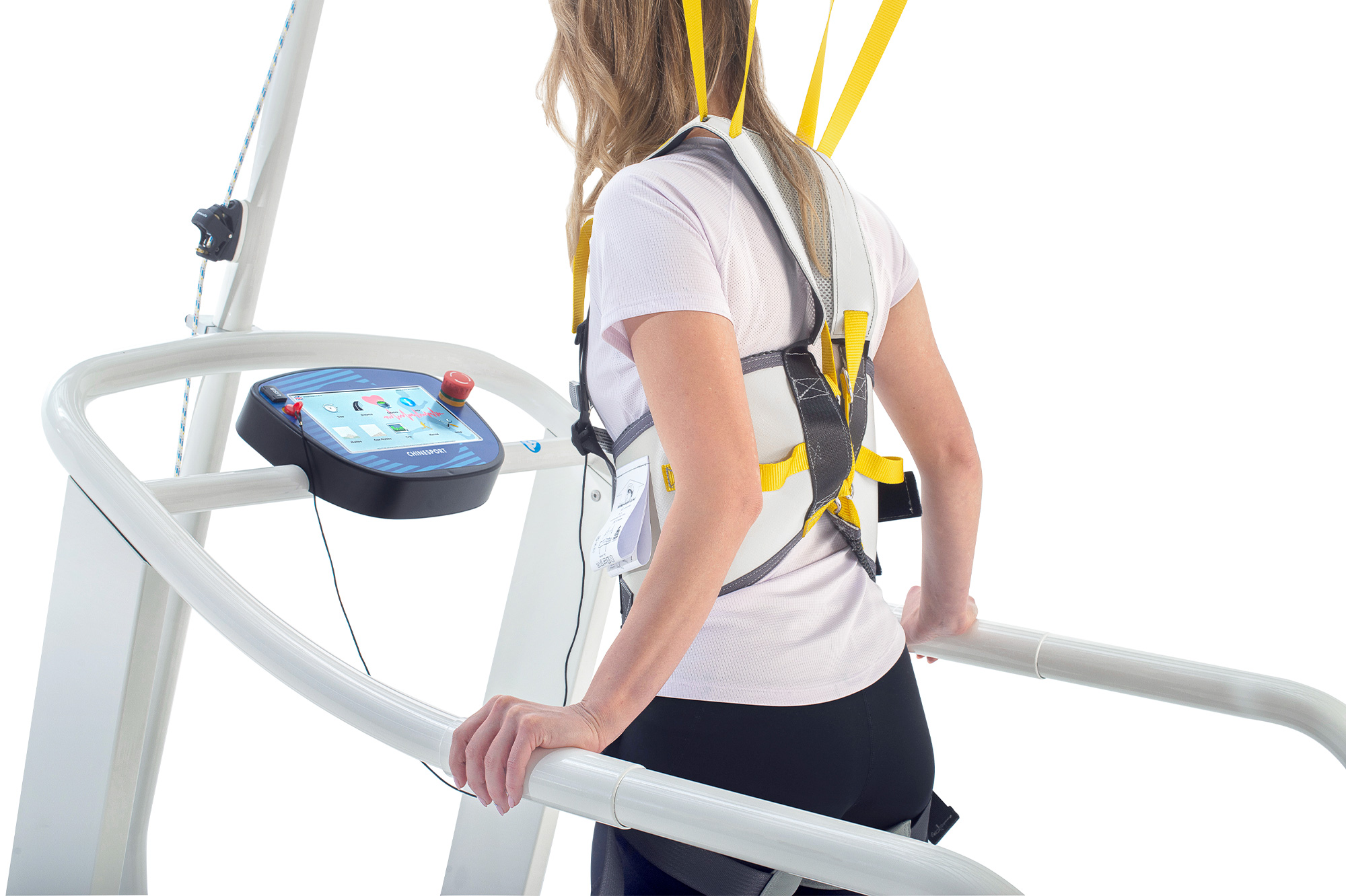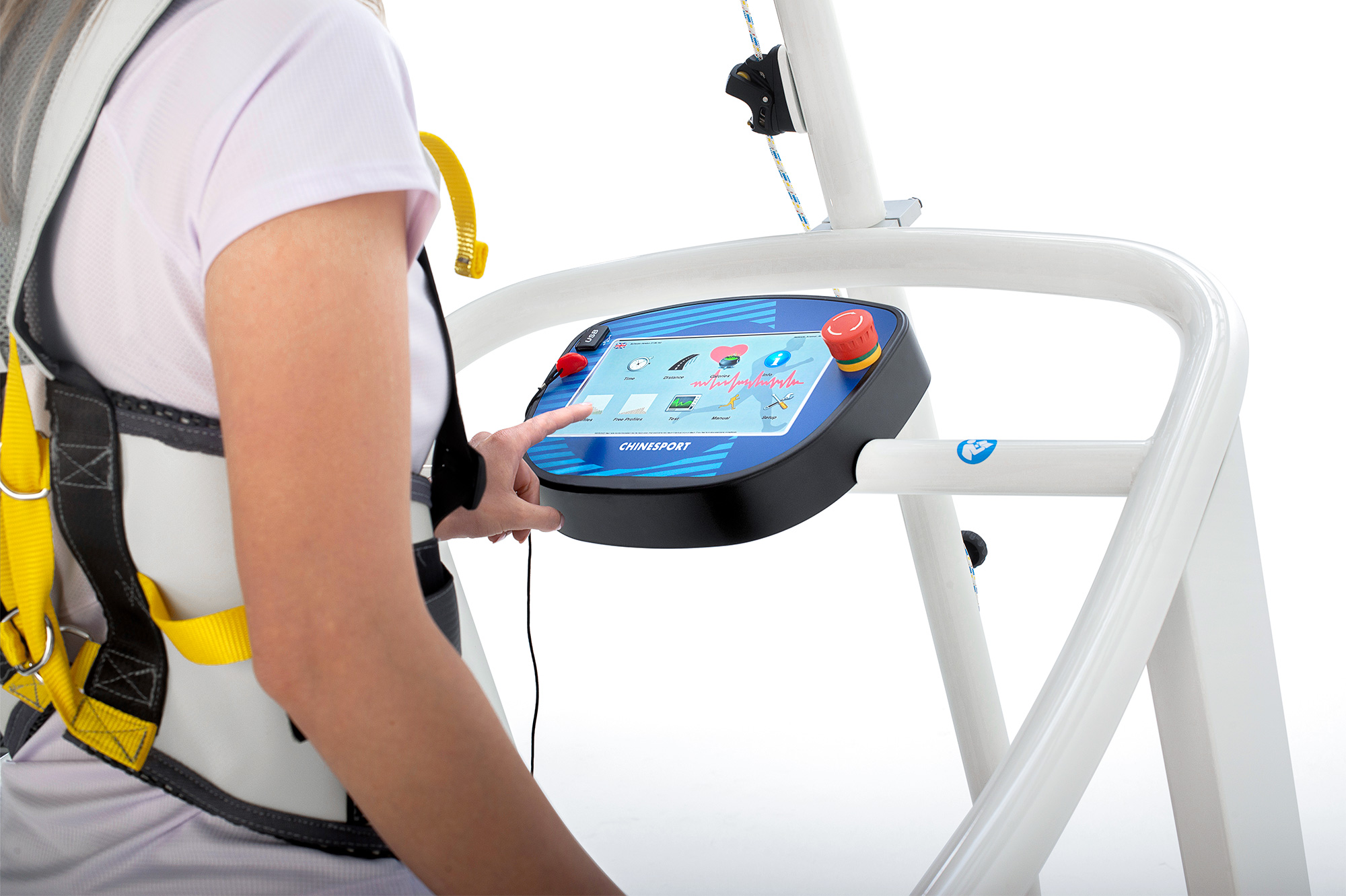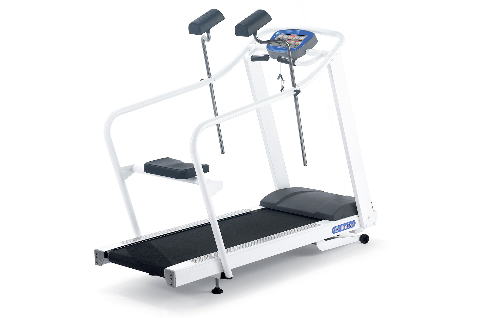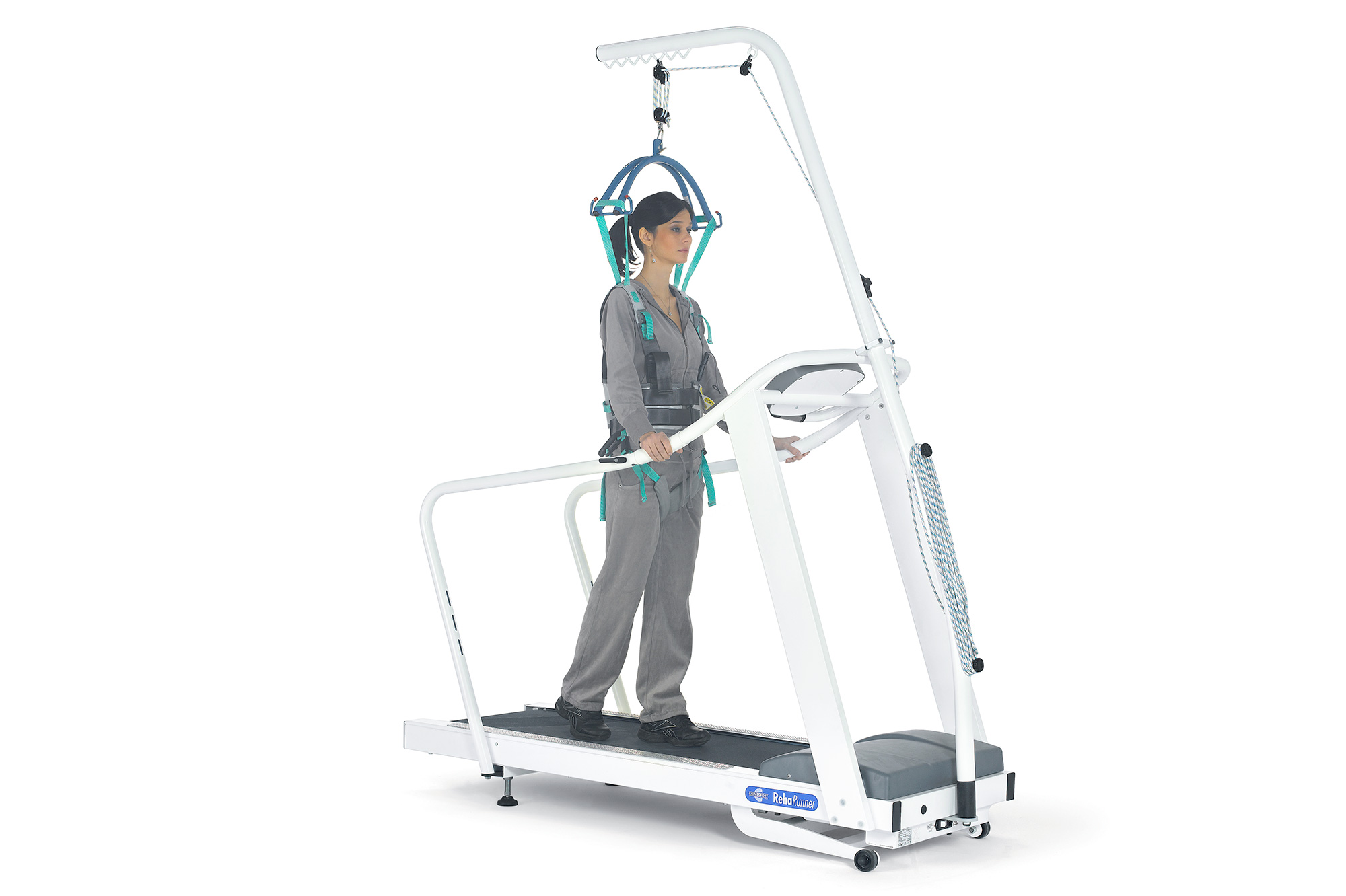 Бігові доріжки Reharunner можна конфігурувати з довгими фіксованими полотнами, а потім додати систему захисту від падінь. Систему захисту від падінь можна доповнити ременями безпеки, доступними в трьох різних розмірах. Ця конфігурація продукту повинна бути вказана під час замовлення разом з іншими можливими аксесуарами, які вас цікавлять. Всі бігові доріжки серії Reharunner можна підключити через порт RS232 до основних ЕКГ-систем на ПК та електрокардіографів.